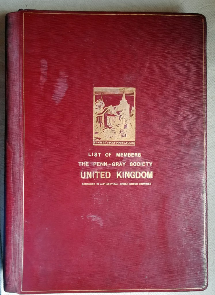 Some photographs of the Penn-Gray Society membership book, and James’ entry therein. Reproduced with kind permission of the Stoke Poges Society.