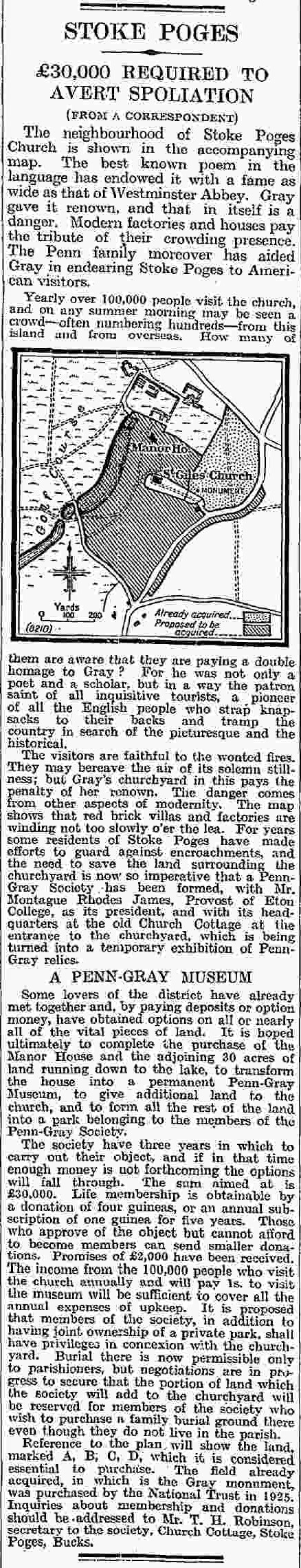 [8] “Stoke Poges – £30,000 Required to Avert Spoliation.” The Times, 28th Jul. 1930, p. 10.