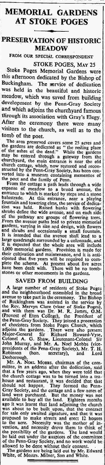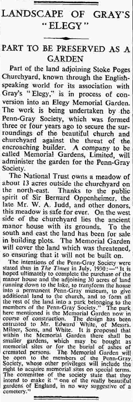 [7] “A Burial Garden at Stoke Poges.” The Times, 4th April 1934, p. 14.