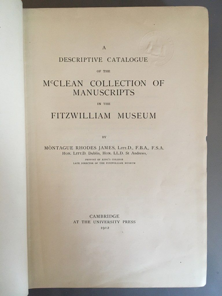Expansion to the original Fitzwilliam catalogue covering the sizable bequest of 203 manuscripts to the museum by Mr Frank McClean. A sizeable volume with a great many plates included.