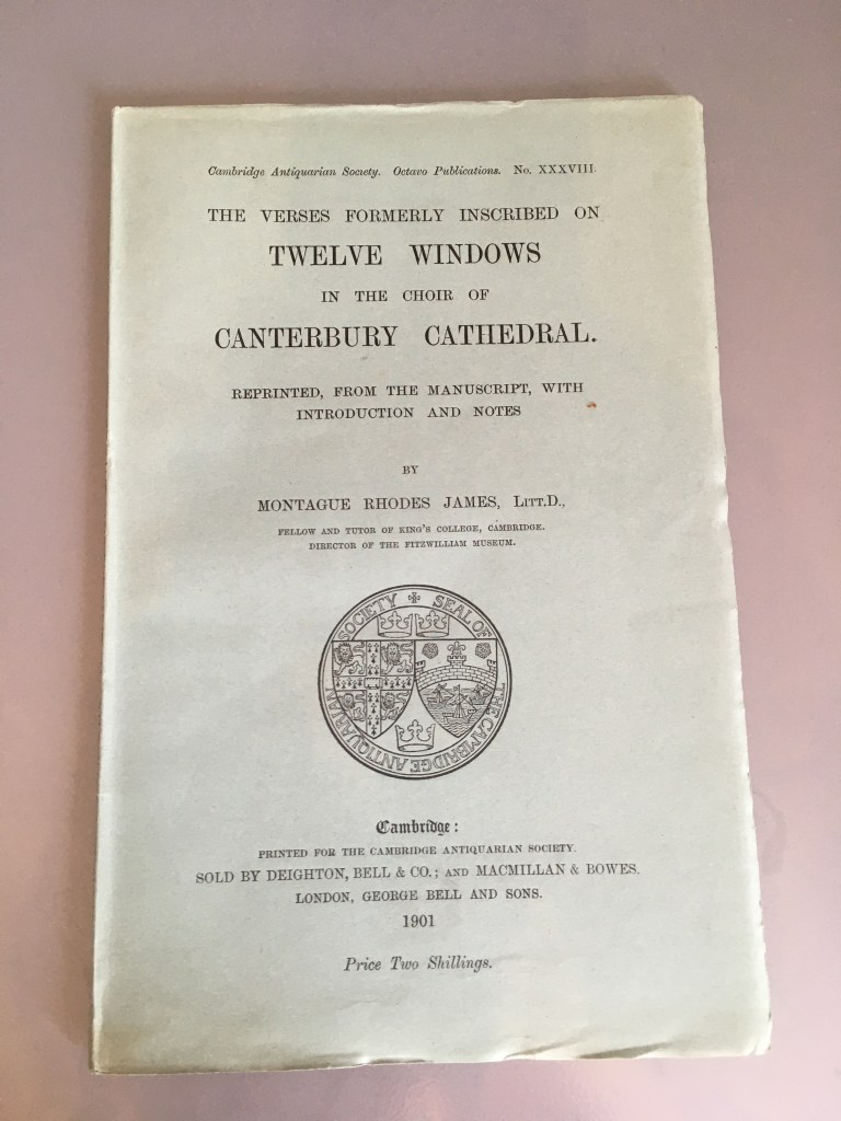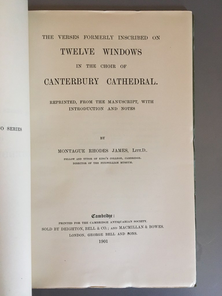 The Verses Formerly Inscribed on Twelve Windows in the Choir of Canterbury Cathedral (Cambridge Antiquarian Society Octavo Series, XXXVIII; George Bell and Sons, 1901)